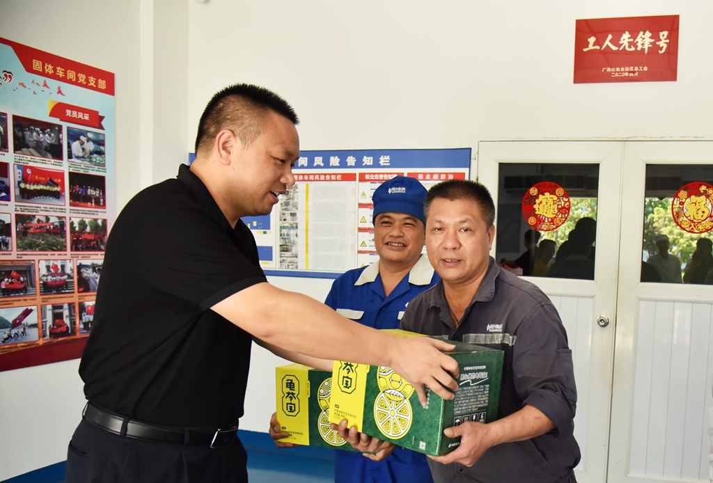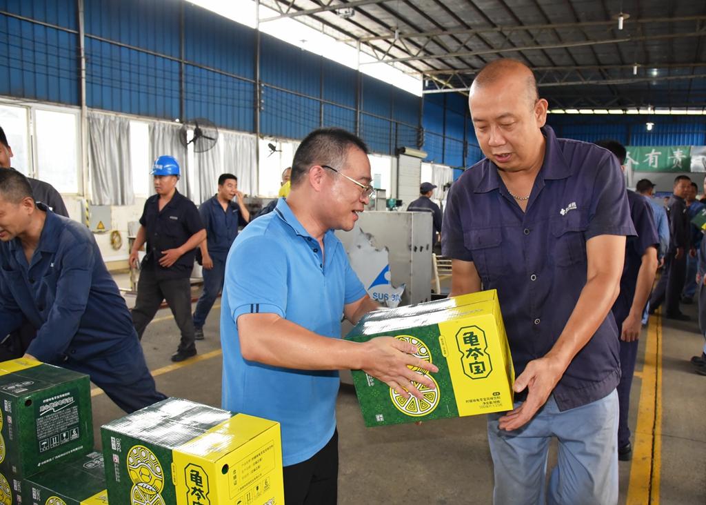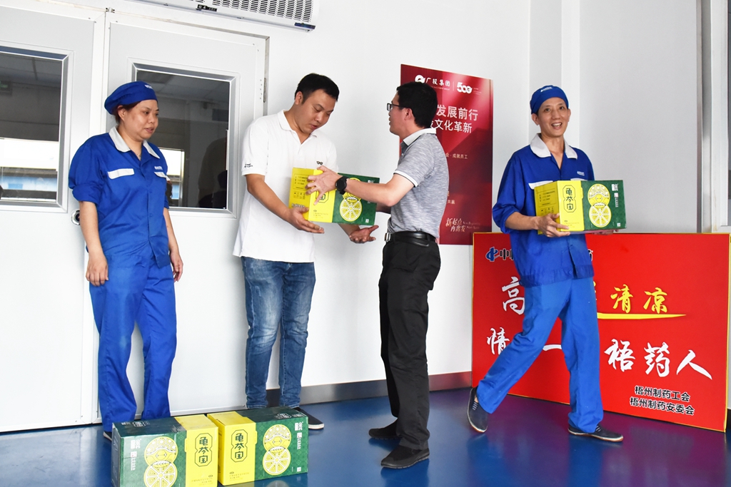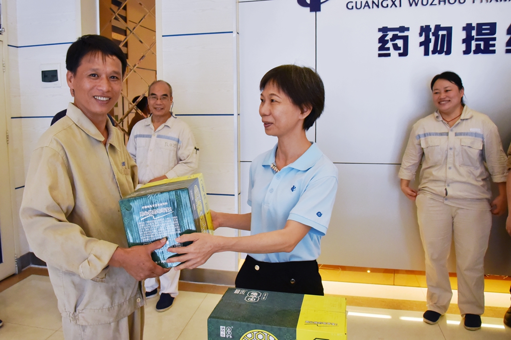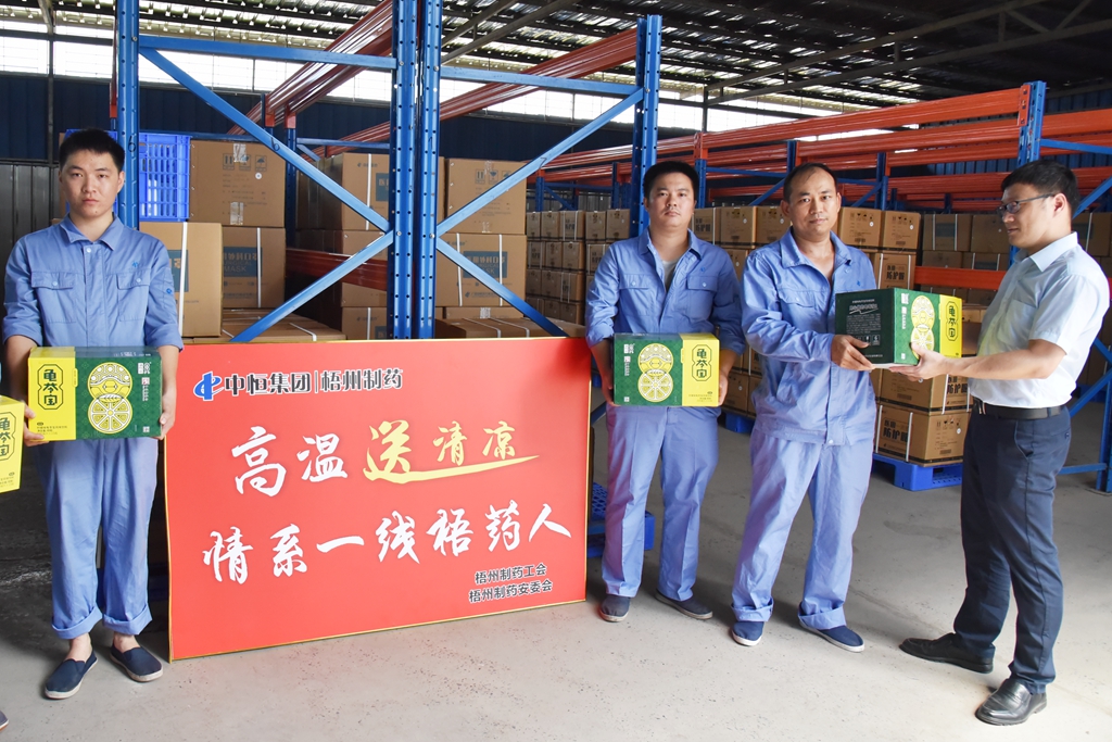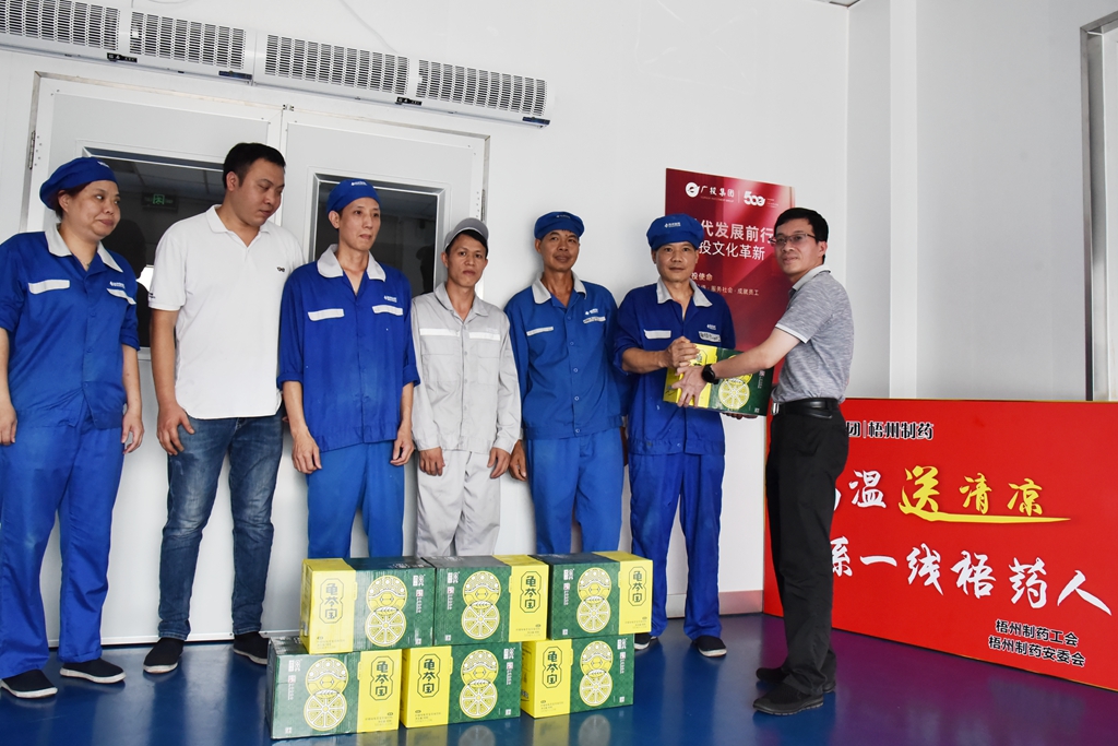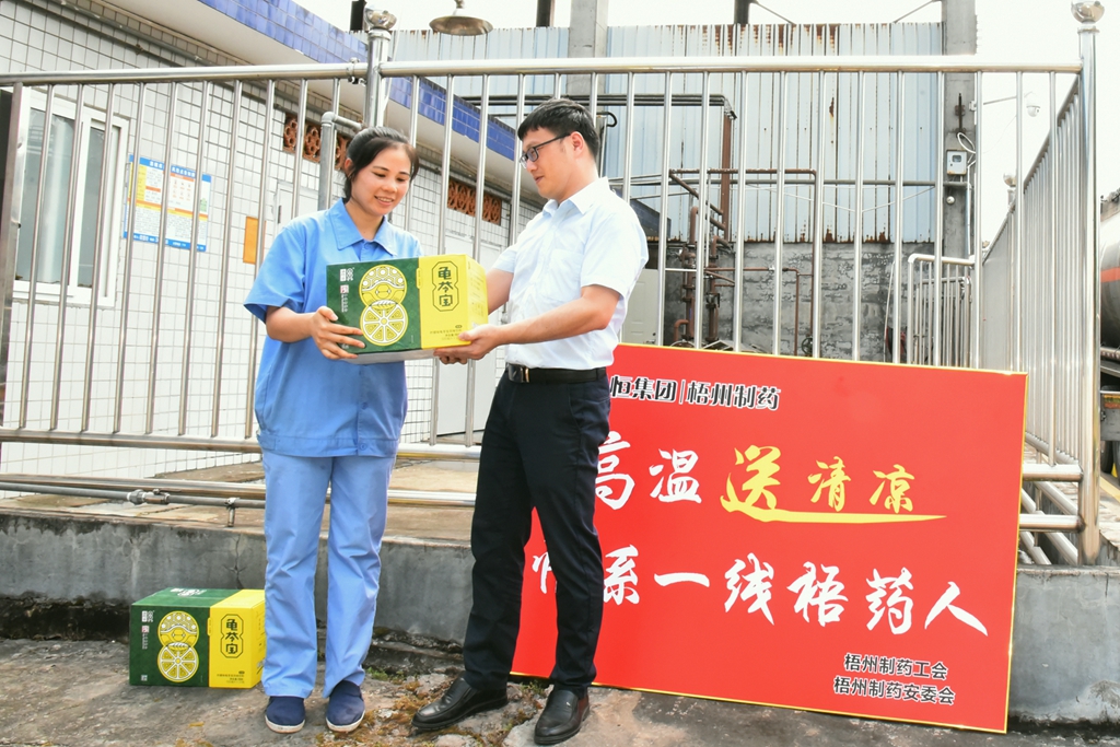 “天氣這么熱,大家辛苦了!”“注意自我保護(hù),記得多喝水!”“崗位都備有防中暑藥品,主任們要留意職工的身體狀態(tài), 合理安排休息?!苯?,梧州制藥領(lǐng)導(dǎo)班子分別帶上清涼飲品,到各車間慰問奮戰(zhàn)在高溫崗位的職工,聲聲叮嚀,讓職工們在盛夏中感受到了陣陣清涼。