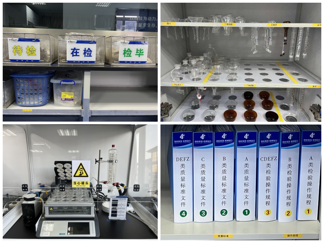 質(zhì)量是企業(yè)的根本。在質(zhì)量控制工作中,每個細微環(huán)節(jié)都需要認真細致、規(guī)范操作,才能保證結(jié)果精準無誤。質(zhì)量控制部通過改善實驗室環(huán)境,保證檢驗操作正確開展。樣品按待檢、在檢、檢畢分顏色擺放,操作不易弄混。對文件、物品進行分區(qū)定置,使用定位膠帶或分隔板進行分隔,便于快速、準確查找。在檢驗儀器旁定置圖文并茂的操作規(guī)程,便于閱讀,提高了檢驗人員操作的準確率。這一系列舉措使得檢驗環(huán)境大大改善,提高了檢驗人員的效率與準確率。