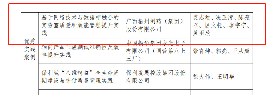 近日,梧州制藥質(zhì)量管理實(shí)踐案例《基于網(wǎng)絡(luò)技術(shù)與數(shù)據(jù)相融合的實(shí)驗(yàn)室質(zhì)量和效能管理提升實(shí)踐》在商業(yè)科技質(zhì)量中心、《企業(yè)管理》雜志社共同組織開展的2023年企業(yè)質(zhì)量管理優(yōu)秀案例征集活動(dòng)中,成功入選2023年企業(yè)質(zhì)量管理優(yōu)秀實(shí)踐案例。