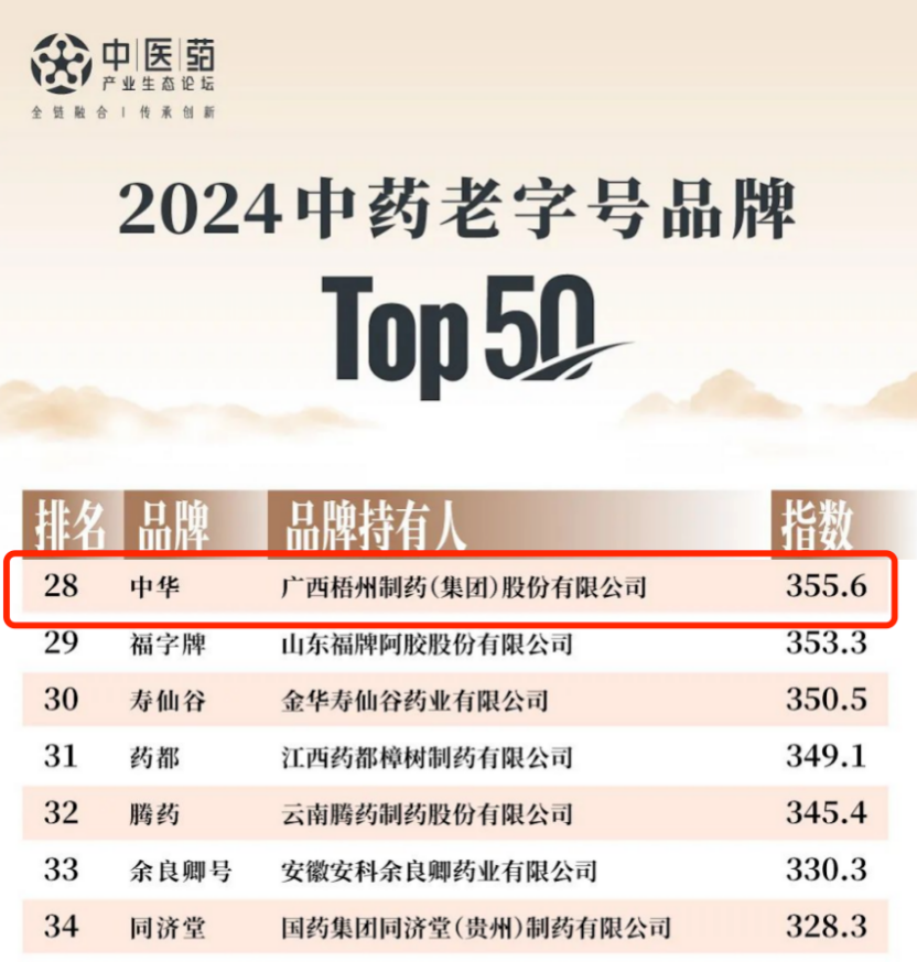 除了起家品種中華跌打丸外,目前梧州制藥還有中華跌打酒、婦炎凈膠囊、結石通片、炎見寧片、蛇膽川貝液等共計135個中成藥產品統(tǒng)一使用“中華牌”商標標識,覆蓋多個領域,實現(xiàn)了品牌價值的創(chuàng)造性轉化和經典產品的創(chuàng)新性發(fā)展。