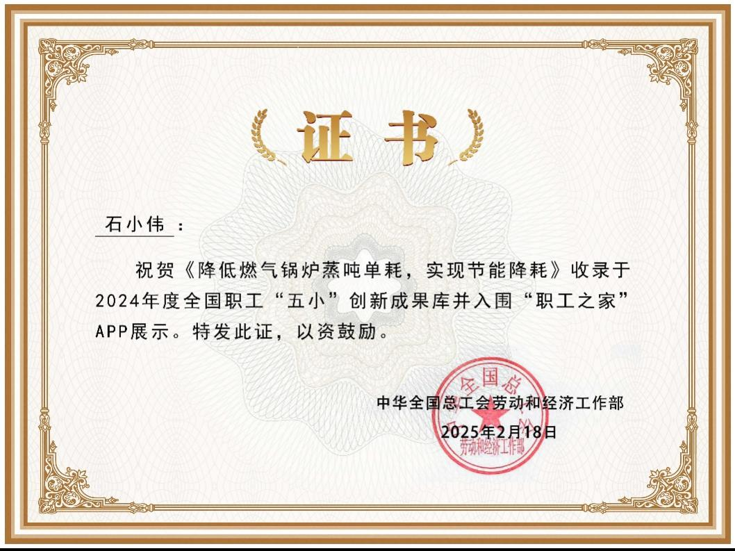 近日,全國(guó)總工會(huì)公布2024年度全國(guó)職工“五小”創(chuàng)新成果庫錄入名單。梧州制藥動(dòng)力基建車間憑借一招“省氣絕活”—— “降低燃?xì)忮仩t蒸噸單耗,實(shí)現(xiàn)節(jié)能降耗”,從全國(guó)3.4萬個(gè)參賽項(xiàng)目中脫穎而出,成功入選全國(guó)職工“五小”創(chuàng)新成果庫。這不僅是梧州制藥的“高光時(shí)刻”,更在全國(guó)總工會(huì)的“職工之家”APP上展示亮相,妥妥地秀了一把梧藥工人的創(chuàng)新實(shí)力。