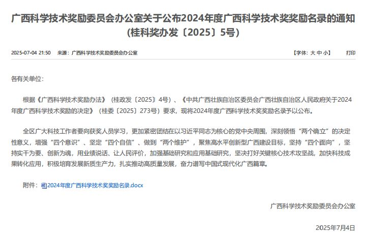 圖片丨廣西科學(xué)技術(shù)獎(jiǎng)勵(lì)委員會(huì)辦公室