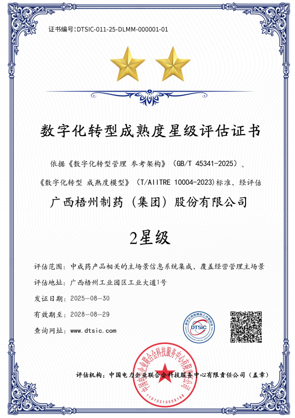 近日,數(shù)字化轉(zhuǎn)型貫標(biāo)工作委員會公布第十九批數(shù)字化轉(zhuǎn)型貫標(biāo)星級評估結(jié)果,廣西梧州制藥(集團(tuán))股份有限公司憑借扎實(shí)的轉(zhuǎn)型實(shí)踐與顯著成效,成功獲評數(shù)字化轉(zhuǎn)型成熟度2星級認(rèn)證,成為中醫(yī)藥行業(yè)數(shù)字化轉(zhuǎn)型進(jìn)程中的優(yōu)秀代表。該榮譽(yù)不僅是對企業(yè)過往轉(zhuǎn)型工作的權(quán)威認(rèn)可,更為行業(yè)同仁推進(jìn)數(shù)字化轉(zhuǎn)型提供了可參考的實(shí)踐路徑。