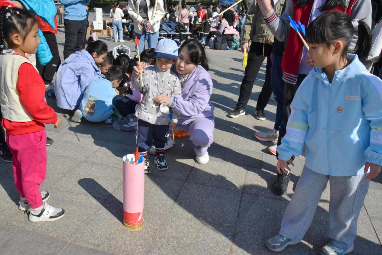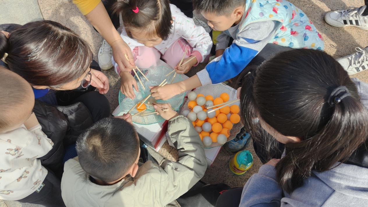 上午9時30分,活動正式拉開帷幕,一場場充滿趣味與溫情的親子游戲輪番上演?!爸樾腥f里”項目中,家長與孩子手持半圓槽拼接通道,小球滑落時共同默契重整,掌心相對間不僅傳遞著力量,更凝聚著親情;壺中“箭”寶環(huán)節(jié)融入傳統(tǒng)元素,家長們手把手帶領(lǐng)孩子瞄準(zhǔn)投擲,每一次成功入壺都引發(fā)全場歡呼;“筷子夾乒乓球”項目磨練耐心技巧,孩子們模仿家長動作小心翼翼夾球,有的家庭還創(chuàng)意發(fā)明“接力夾球”玩法,現(xiàn)場加油聲、歡呼聲交織成群。