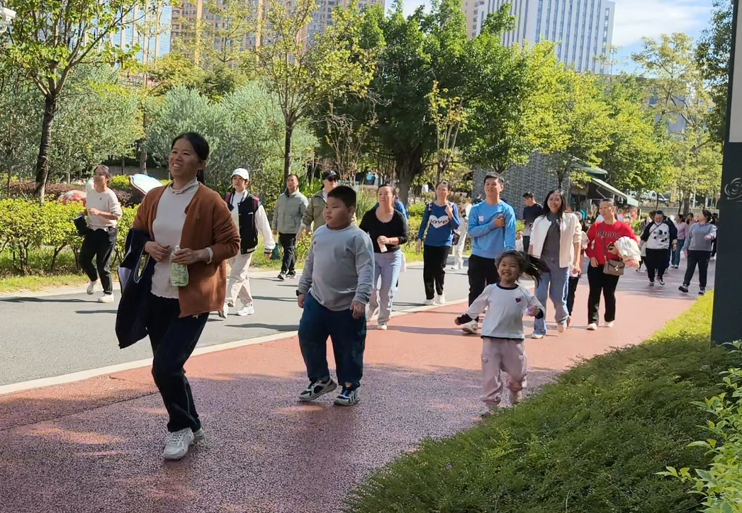 游戲環(huán)節(jié)結(jié)束后,工會組織開展了親子環(huán)湖健走活動。50余組家庭攜手出發(fā),沿澄澈的玫瑰湖畔漫步前行。為保障活動安全有序,工會提前勘察路線,沿途設(shè)置3個補給站,志愿者貼心提供飲用水和小食品。家長與孩子們或緩步交談,或駐足賞景,或拍照留念,將湖畔的美景與親子的笑顏一一定格,歡聲笑語縈繞在整個環(huán)湖路上。